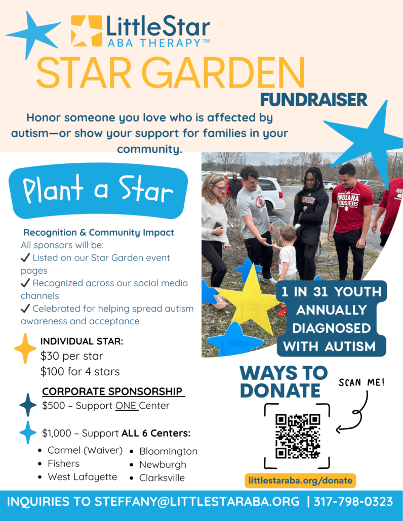 Each location represents a community coming together to support individuals with autism. Your partnership helps plant stars across Indiana — showing your love and support for OUR community!